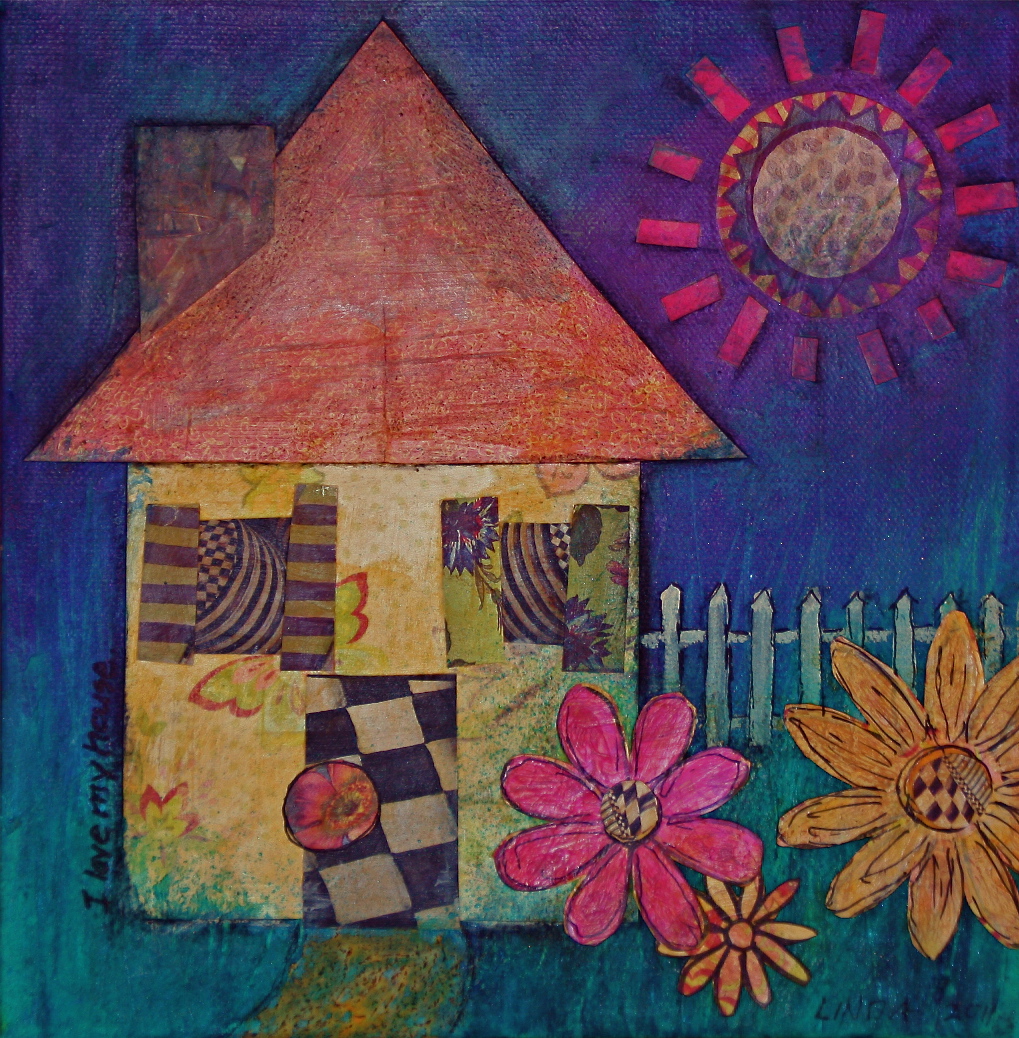 I chose to make a image of a house since so often children use this as part of their picture making. I really was using the house as a symbol of safety and warms...Its a small painting...I believe its 7x7. I was contemplating adding text but have held back for now. I'd love to hear your thoughts on this.